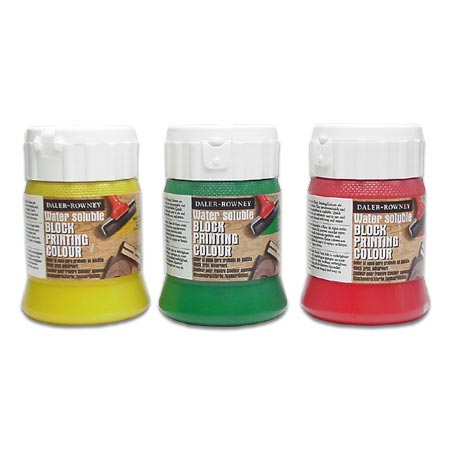 Veel gebrikt voor linosnedes en monoprint. Daarmee min of meer geschikt voor kinderen. Drukinkt in gewenste kleuren op olie- of waterbasis.